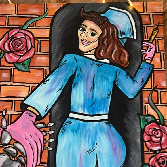 Box canvas Rose brick Skelton nurse needle shot tunnel pop art colorful design home décor